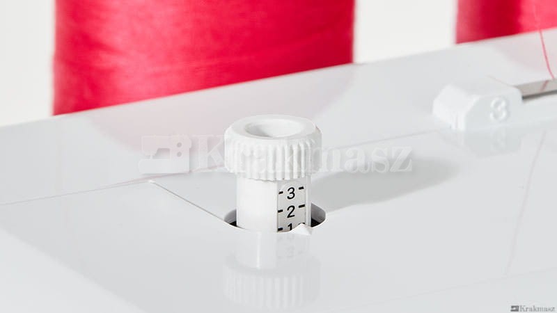 - dźwignia regulacji naprężenia zapewniająca równy szew na trudnych materiałach (pod pokrywą przednią)