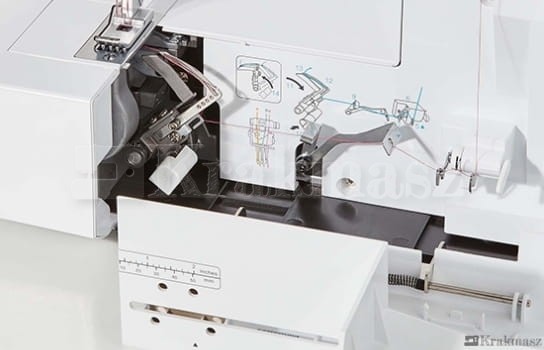 - dostępne ściegi drabinkowe z dolnym przeplotem: 3-igłowy, 2-igłowy (szeroki, wąski lewy, wąski prawy) + 1-igłowy (łańcuszek)