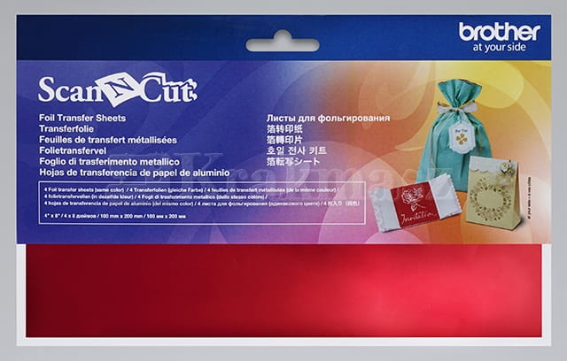 W zestawie są 4 arkusze foli do złocenia w kolorze czerwonym, każdy o wymiarach 100 x 200 mm.