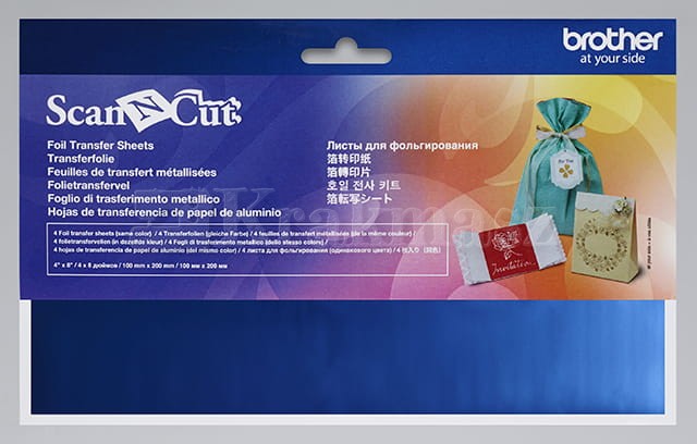 W zestawie są 4 arkusze foli do złocenia w kolorze niebieskim, każdy o wymiarach 100 x 200 mm.