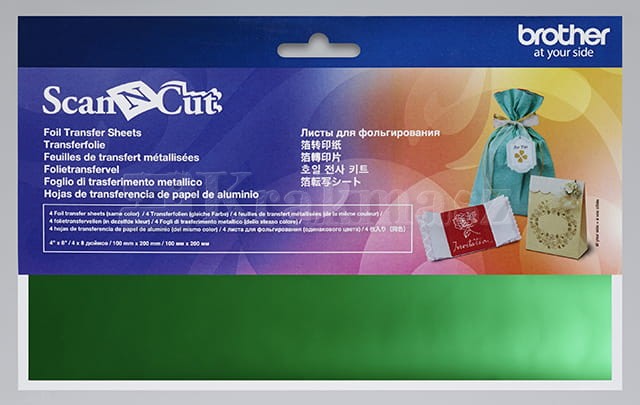 W zestawie są 4 arkusze foli do złocenia w kolorze zielonym, każdy o wymiarach 100 x 200 mm.