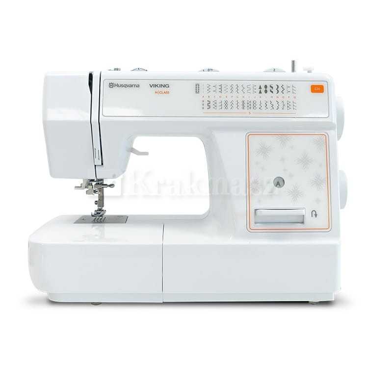 HUSQVARNA VIKING E20 niezawodna maszyna do szycia, w której pamięci jest są 32 zaprogramowane ściegi, w tym ściegi proste, owerlokowe, ścieg kryty, zyg-zaki i ściegi dekoracyjne. Maszyna ma też program do obszywania dziurek, a w standardowym wyposażeniu jest specjalna stopka do wykonywania obszyć dziurek wprost pod wymiar guzika. Dostępne ściegi możemy edytować za pomocą regulacji długości - do 4 mm i szerokości ściegów - do 5 mm. Niezwykłe efekty możemy osiągnąć wyszywając ściegi dekoracyjne podwójną igłą.