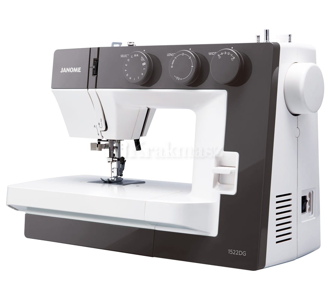Obsługa maszyny do szycia Janome 1522 jest bardzo przyjazna i intuicyjna, a to zarówno dzięki czytelnym i wygodnie umieszczonym pokrętłom wyboru i regulacji ściegów, jak i za sprawą funkcji ułatwiających i usprawniających szycie. Do takich funkcji z pewnością zaliczamy wbudowany nawlekacz igły (z jego pomocą przeciągnięcie nici przez oczko w igle jest bardzo proste i zajmuje dosłownie chwilkę), boczny obcinacz nici (dzięki niemu nie musisz za każdym razem sięgać po nożyczki by obciąć nić), oświetlenie pola pracy led czy wygodny system wymiany stopek matic, który sprawia, że wymiana stopki jest bardzo szybka, nie musisz niczego przykręcać czy odkręcać.