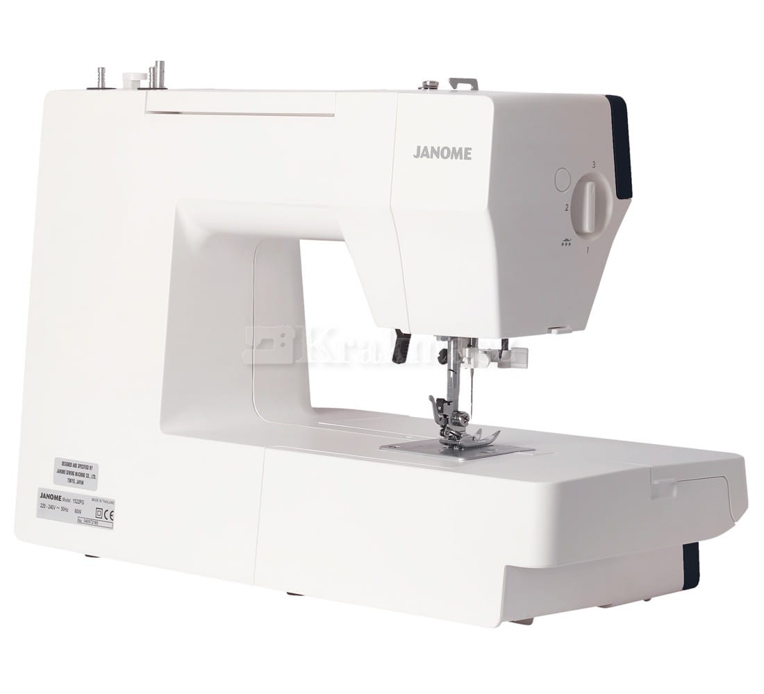 Maszyna Janome 1522 posiada coś czego nie znajdziesz w żadnej innej maszynie do szycia (w tej grupie cenowej), czyli dużą i bardzo wygodną przestrzeń roboczą. Co mamy dokładnie tutaj ma myśli? Wielkość blatu mierzonego na płasko w maszynie Janome 1522 ta aż 105,4 mm x 111,8 mm. Dla porównania Juno by Janome E1015 (to maszyna standardowych wymiarów) ma blat o wymiarach 66,9 mm x 54,8 mm. Różnica jest bardzo duża. Żadna inna maszyna do szycia nie ma tak dużego, płaskiego blatu roboczego, a co za tym idzie, tak dużej wygody i komfortu w czasie szycia. Zastosowanie tak dużej przestrzeni roboczej w maszynie Janome 1522 ma jeszcze jeden plus, czyli bardzo duży i wygodny schowek na akcesoria, który znajduje się w wspomnianym blacie.