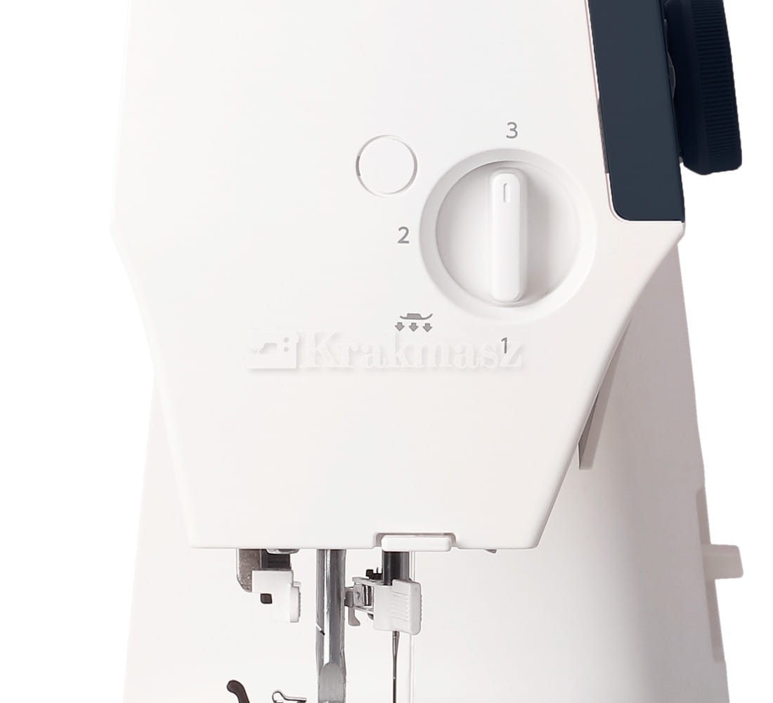 Kolejną wartą uwagi funkcją, która znajduje się w maszynie Janome 1522 jest regulowany, trzystopniowy docisk stopki. Dzięki tej funkcji możesz swobodnie szyć każdy rodzaj materiału. Nieważne czy będziesz szyć cienkie, bardzo delikatne tkaniny, różnej grubości i rozciągliwości dzianiny, skórę czy kilka warstw jeansu. Regulacja docisku stopki sprawi, że materiał będzie łatwiej przesuwany w czasie szycia, nie będzie nadmiernego rozciągania materiału, szycia w miejscu czy uszkadzania jego struktury, za to powstały ścieg będzie wyglądał perfekcyjnie.