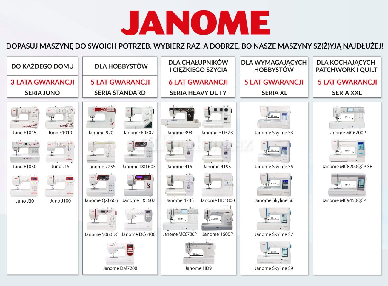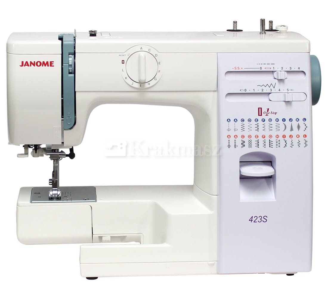 Posiada najważniejsze ściegi (ścieg stebnowy, zyg-zak, owerlokowy i kryty) oraz funkcję (płynna regulacja za pomocą suwaków długości i szerokości ściegów, wolne ramię, które umożliwia łatwe szycie rękawów i nogawek) Do wyboru mamy 23 najważniejszych programów ściegowych, w tym automatycznie obszywanie dziurki. Zarzną funkcja maszyny Janome 423S jest reguloacja docisku stopki, dzięki któremu bez problemów przeszyjemy cienkie, rozciągliwe czy grube materiały. Wzmocniona konstrukcja i metalowe podzespoły w Janome 423 S sprawią, że nie tylko maszyna jest mocna i wytrzymała, ale również pewnie “stoi” na stole i nie wpada w drgania podczas szycia.
