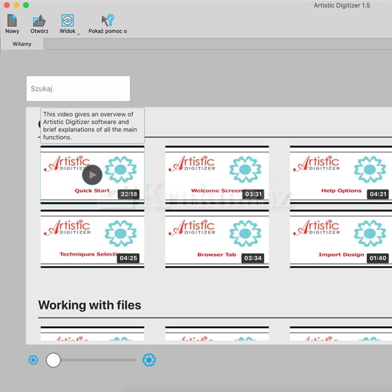 Program Artistic Digitizer posiada intuicyjny interface, a możliwość ustawienia polskiego menu sprawia, że obsługa jest dużo łatwiejsza, nawet dla osób początkujących. Dodatkowym ułatwieniem w jego obsłudze jest szybki dostęp do ponad 60 filmów instruktażowych (dostępnych bezpośrednio w oprogramowaniu). Filmy zawierają wszystko od prezentacji podstawowych funkcji programu po szczegółowe omówienie bardziej złożonych projektów. Program Artistic jest jednym z niewielu programów do projektowania haftów, który można zainstalować zarówno na systemie operacyjnym Windows jaki i na systemie macOS.