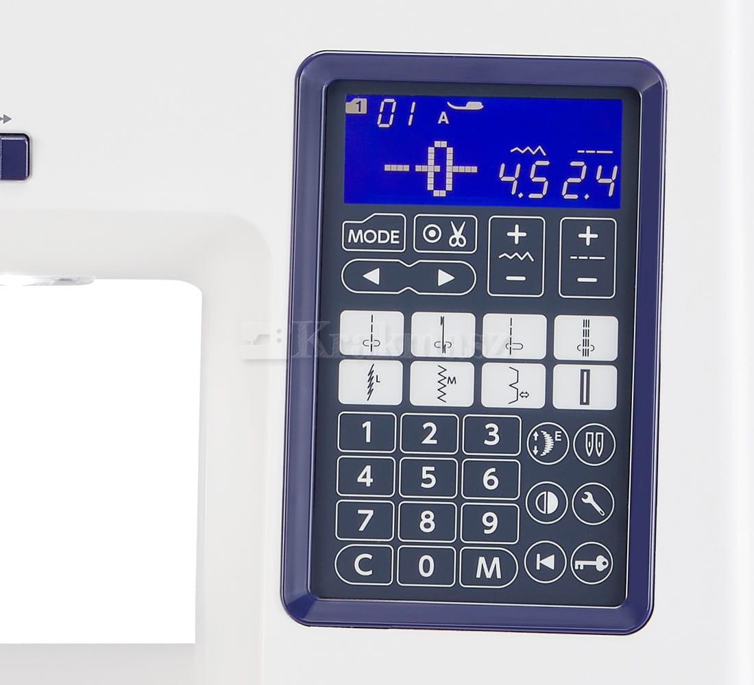 - Czytelny dotykowy panel sterujący, z wyświetlaczem LCD informującym o wybranym ściegu i jego parametrach oraz wskazujący dobór odpowiedniej stopki