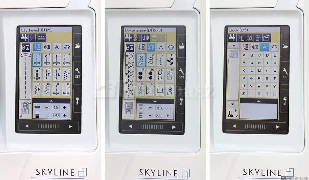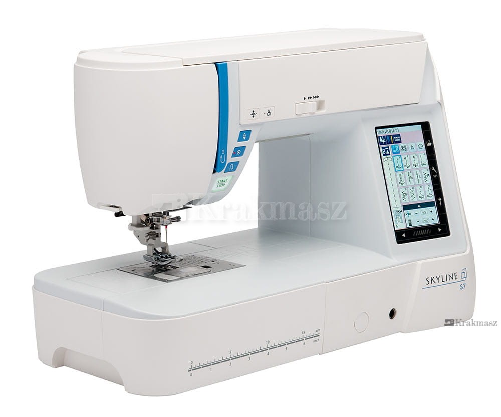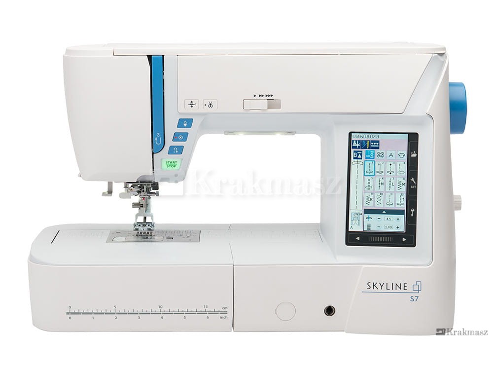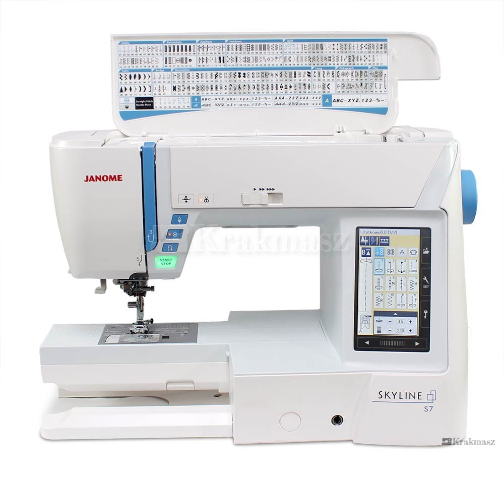 Model Skyline S7 to wysokiej klasy nowoczesna maszyna do szycia wykonana z dbałością o detale. Cechą wyróżniającą tę maszynę jest bardzo duży, kolorowy wyświetlacz zapewniający szybki i wygodny dostęp do niezbędnych funkcji i ustawień. Menu jest w całości w języku polskim, znacznie ułatwia to poznanie wszystkich możliwości maszyny. W odróżnieniu od standardowych maszyn domowych Janome Skyline S7 jest znacznie większa, odległość pomiędzy igłą, a ramieniem maszyny wynosi 21 cm, co stwarza ogromną przestrzeń roboczą. W połączeniu z automatycznym podnoszeniem i opuszczaniem stopki daje to niebywały komfort np. podczas pikowania. Maszyna posiada ogromną liczbę ściegów, a także program Stitch Composer do ich projektowania, co sprawia, że liczba programów ściegowych jest nieograniczona.