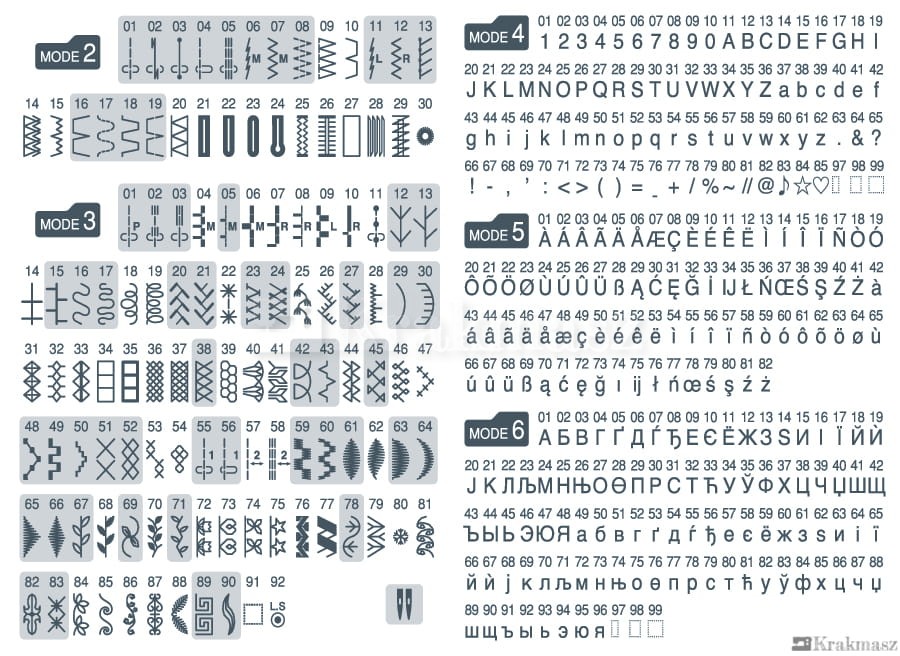 - 391 programów ściegowych (w tym ściegi użytkowe, zygzaki, owerlokowe, elastyczne, ozdobne, satynowe, dziurki i alfabet)