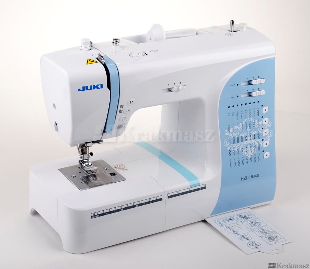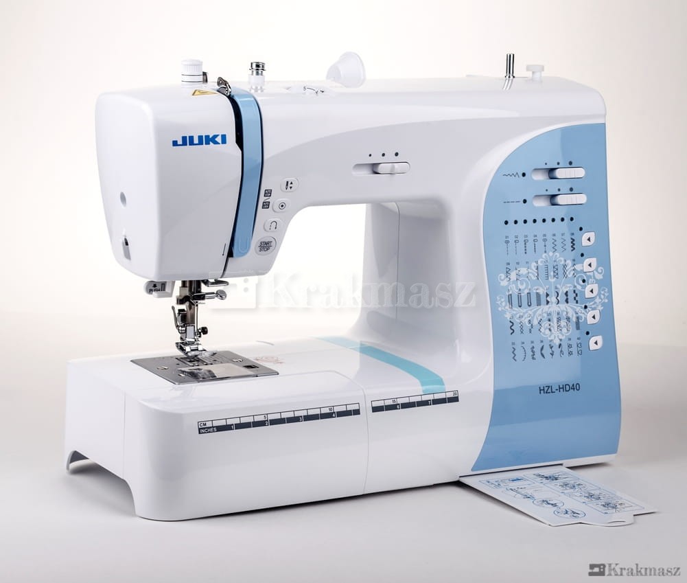 Maszyna do szycia Juki HZL-HD40 to nowoczesna komputerowa maszyna do użytku domowego. Posiada do wyboru 40 programów ściegowych, wśród których znajdziemy tradycyjne ściegi użytkowe, ściegi dekoracyjne oraz 3 rodzaje automatycznego obszywania dziurki. Wyposażona m.in. w automatyczne pozycjonowanie igły, 2 rodzaje ryglowania, wolne ramię, regulowany docisk stopki i możliwość wyłączenia transportu. Juki HZL HD 40 jest bardzo intuicyjna w użytkowaniu. Twarda walizka znajdująca się w standardowym wyposażeniu dodatkowo zabezpieczy maszynę i ułatwi przechowywanie i transport.