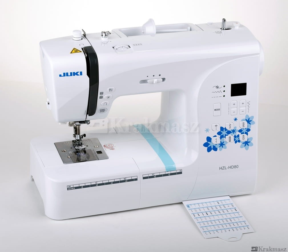Maszyna do szycia Juki HZL-HD80 to nowoczesna maszyna komputerowa z wyświetlaczem LCD doszycia w domu. Posiada do wyboru 80 programów ściegowych, wśród których znajdziemy tradycyjne ściegi użytkowe, szeroki wybór ściegów dekoracyjnych oraz 6 rodzajów automatycznego obszywania dziurki Funkcjonale tabliczki wzorów wysuwane z maszyny znakomicie pokazują jaki numer ma dany wzór. Wyposażona jest w automatyczne pozycjonowanie igły, 2 rodzaje ryglowania, wolne ramię, regulowany docisk stopki i możliwość wyłączenia transportu. Juki HZL HD 80 jest maszyną bardzo przyjazna, a zarazem prosta w obsłudze. Twarda walizka znajdująca się w standardowym wyposażeniu dodatkowo ułatwi transport i przechowywanie.