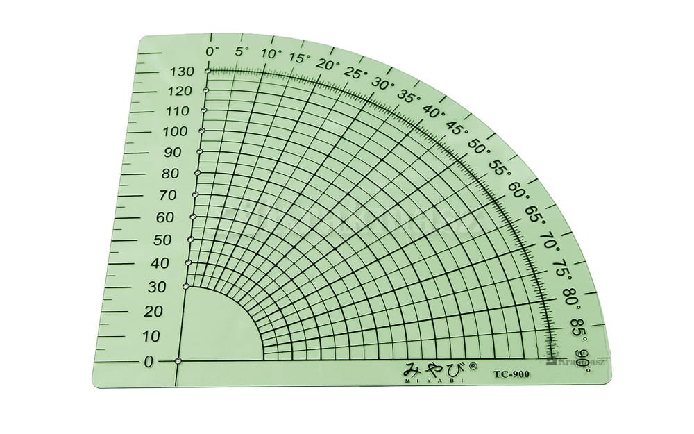 Kątomierz z zaznaczonymi kątami, znacznie ułatwia wycinanie za pomocą noża krążkowego.
