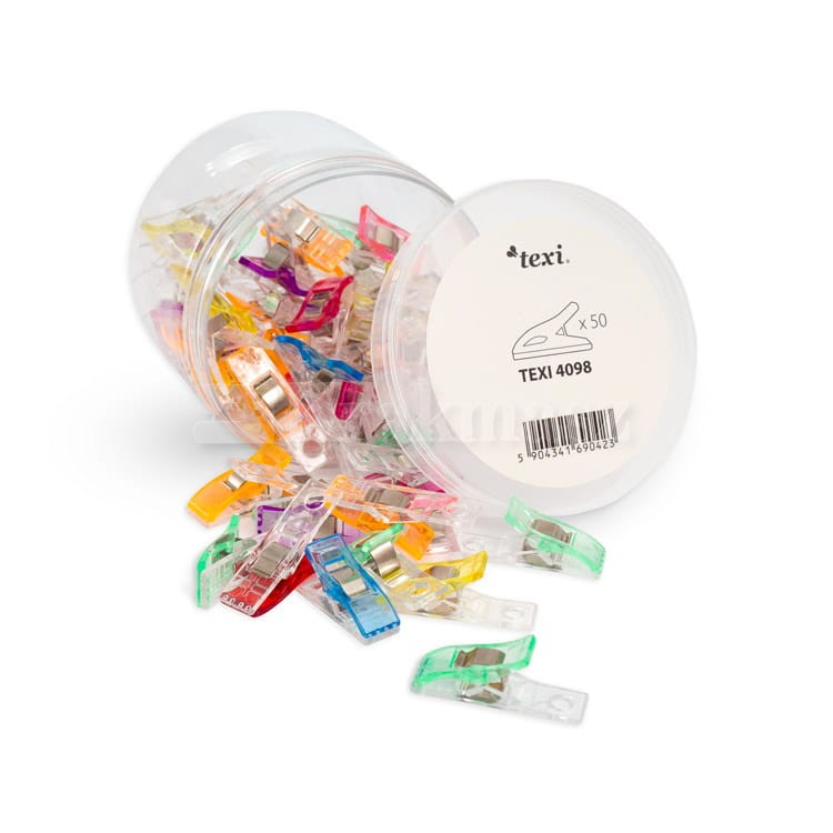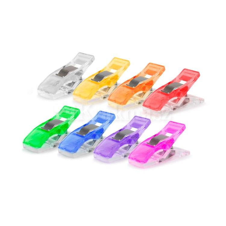 Zestaw 50 klipsów do materiału, w różnych kolorach. Zapakowanych w plastikowe pudełko, dzięki czemu masz wszystko uporządkowane.