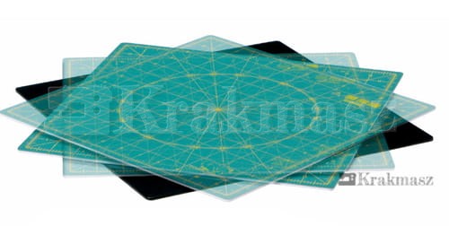 Mata do cięcia samobojąca, obrotowa. Mata składa się z dwóch części pozwala na łatwe obracanie górną częścią maty oraz znajdującym się na niej materiałem.