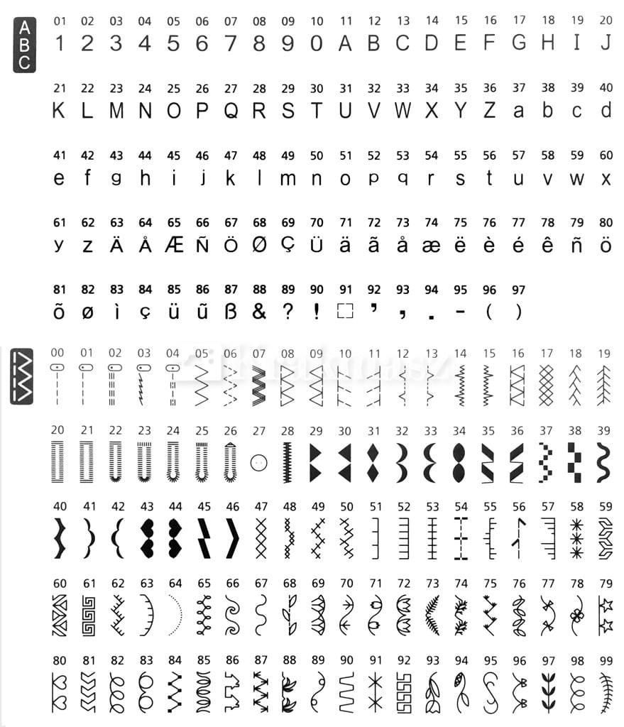 - 197 programów ściegowych (w tym ściegi użytkowe, owerlokowe, satynowe, ozdobne, alfabet)