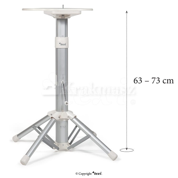 Rozkładana i regulowana (telskopowo) podstawa do prasowalnic parowych. Idelana do pracy na siedziąco. Pasuje do wszystkich modeli TEXI APOLLO. Zakres regulacji: 63 - 73 cm.