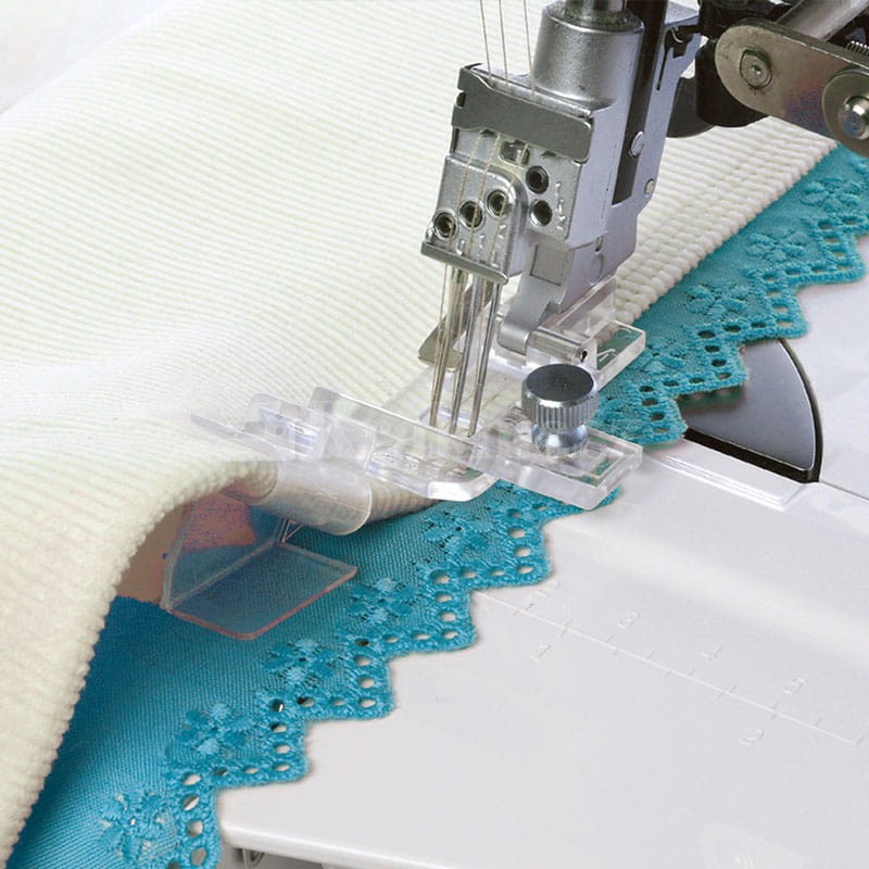 Umożliwia on podwinięcie doszywanej krawędzi materiału (6 mm) z jednoczesnym równym prowadzeniem krawędzi np. koronki, falbanki.