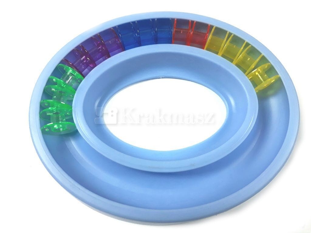 Silikonowy ring do przechowywania szpulek na nic dolną. Dzięki ringowi szpulki są zawsze pod ręką a nawinięte na nich nici nie rozwijają się.