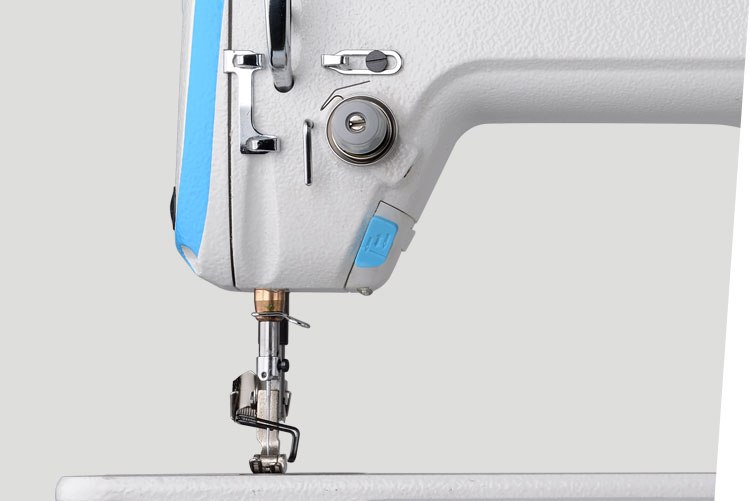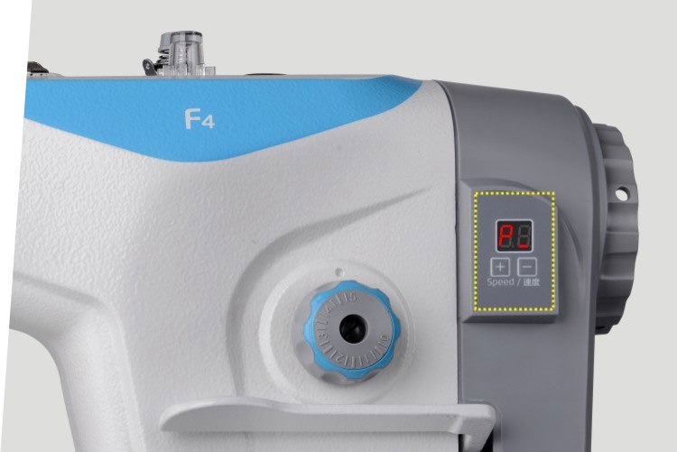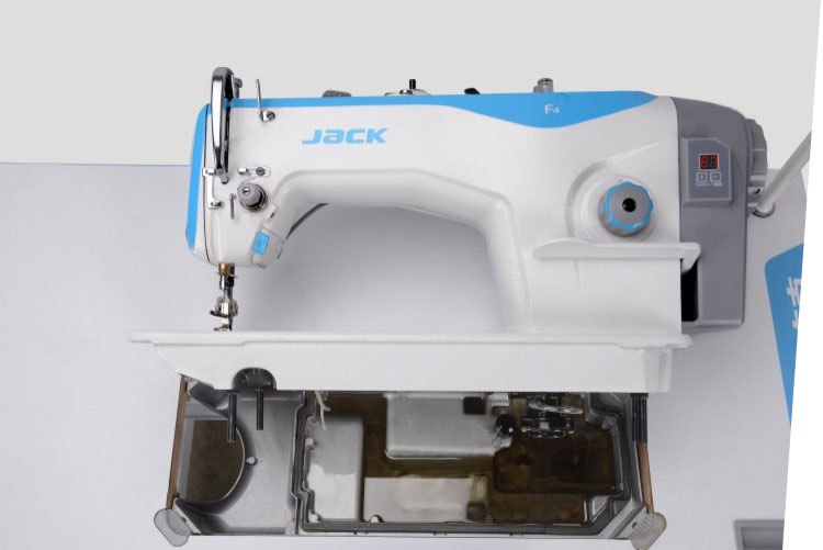 Stebnówka 1-igłowa Jack F4 ze zintegrowanym w głowicy silnikiem servo (nowoczesny oszczędny silnik), transport ząbkowy, przeznaczona do szycia materiałów lekkich i średnich. Zintegrowane oświetlenie energooszczędne LED z regulacją natężenia światła. Regulacja prędkości szycia oraz długości ściegu.