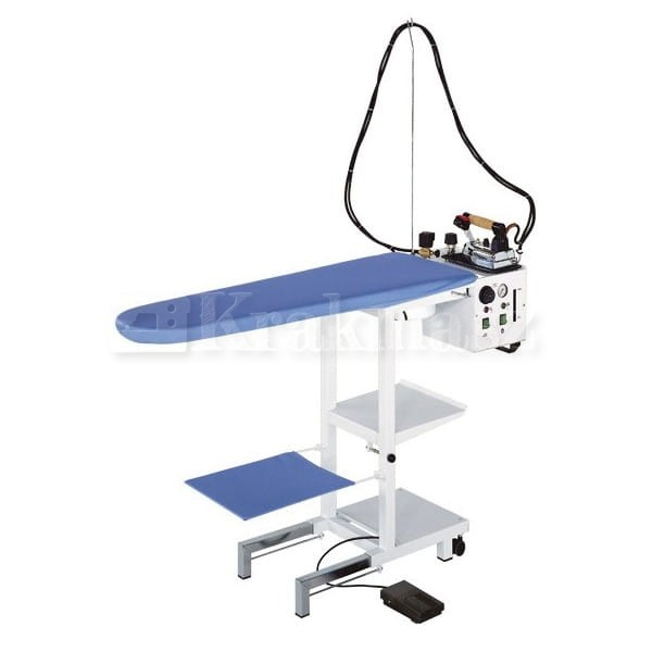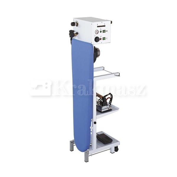 Profesjonalny stół prasowalniczy Comelux Maxi C5 wyposażony jest w odsysanie i podgrzewanie, co niezwykle ułatwia prasowanie oraz sprawia, że prasowana na nim odzież zachowuje swoją jakość. Regulacja temperatury podgrzewania w zakresie 0-90 °C pozwala na dopasowanie temperatury do prasowanego materiału. Stół posiada możliwość złożenia co sprawia, że jego kompaktowe wymiary ułatwiają jego przechowywanie lub transport. Dodatkowe półki zapewniają miejsce na prasowane materiały. Urządzenie posiada wbudowaną wytwornicę pary o pojemności 5 L zapewniającą wiele godzin pracy. Urządzenie wyposażone jest w manometr pozwalający na kontrolę ciśnienia wewnątrz kotła oraz rurkę do kontroli poziomu wody. Świetnie sprawdzi się w zakładach krawieckich, punktach usługowych oraz firmach odzieżowych. Wraz z urządzeniem Comelux Maxi C5 otrzymujemy: podkładkę silikonową, drążek podtrzymujący przewody, elektrozawór z regulacją pary oraz zawór bezpieczeństwa zwiększający komfort oraz bezpieczeństwo pracy oraz żelazko Comel małe 721 PAB.
