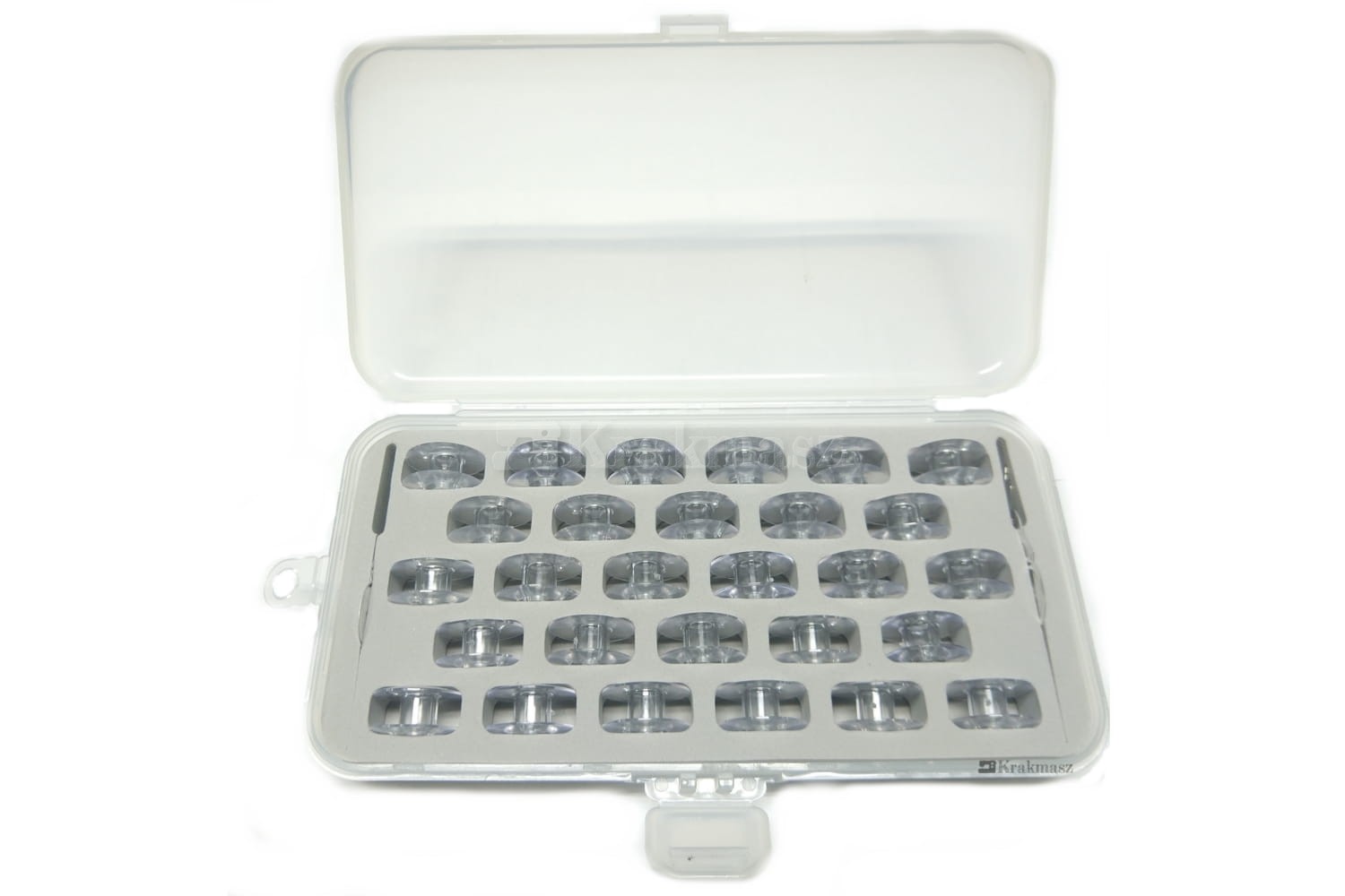 Szpulki soczewkowe w pudełku Łucznik i Singer - 28 szt